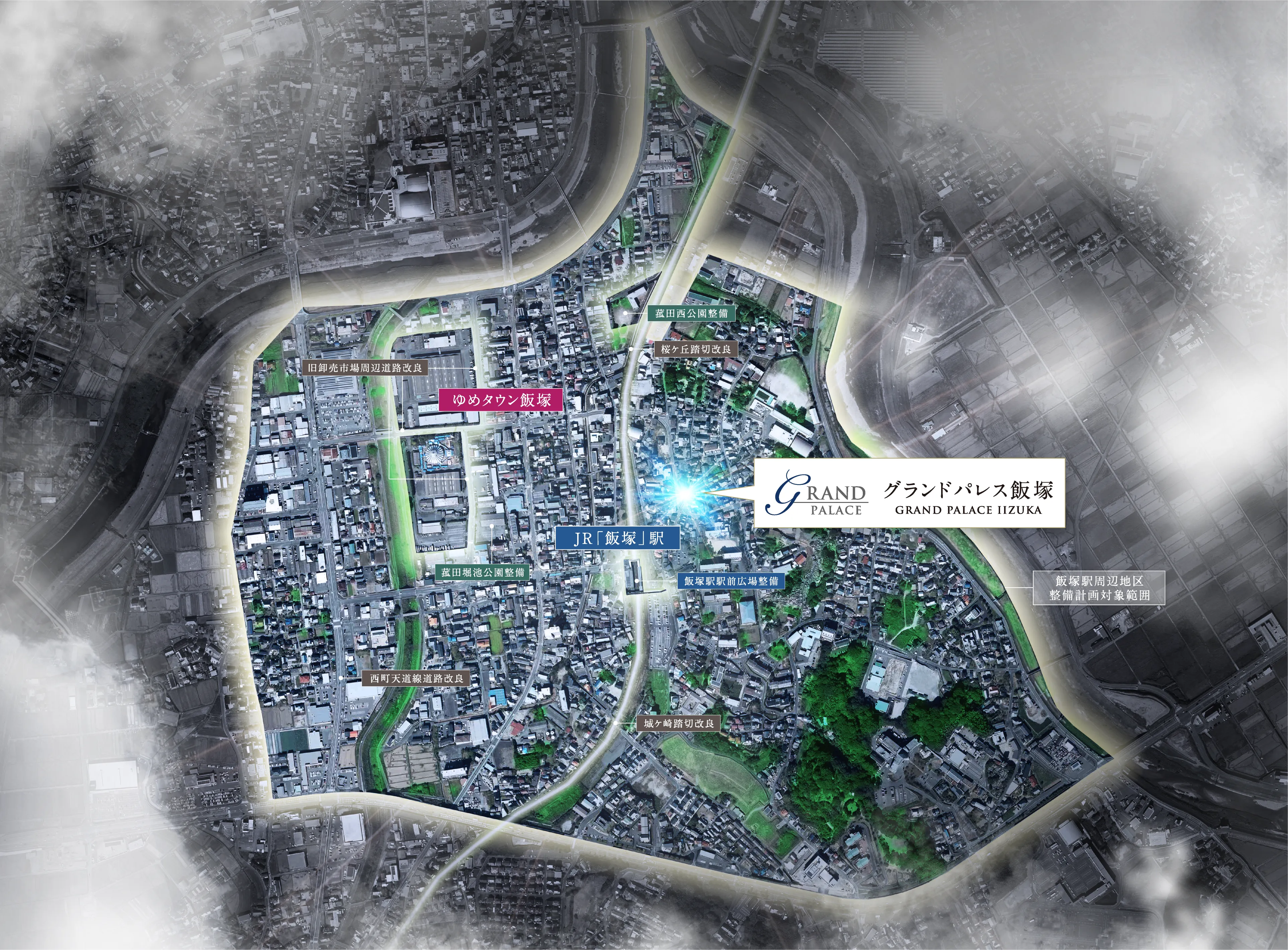 「博多」駅をはじめとする都心へダイレクトにつながる、JR「飯塚」駅へ徒歩5分。新しく生まれ変わる駅前が、理想のライフスタイルを叶えます。