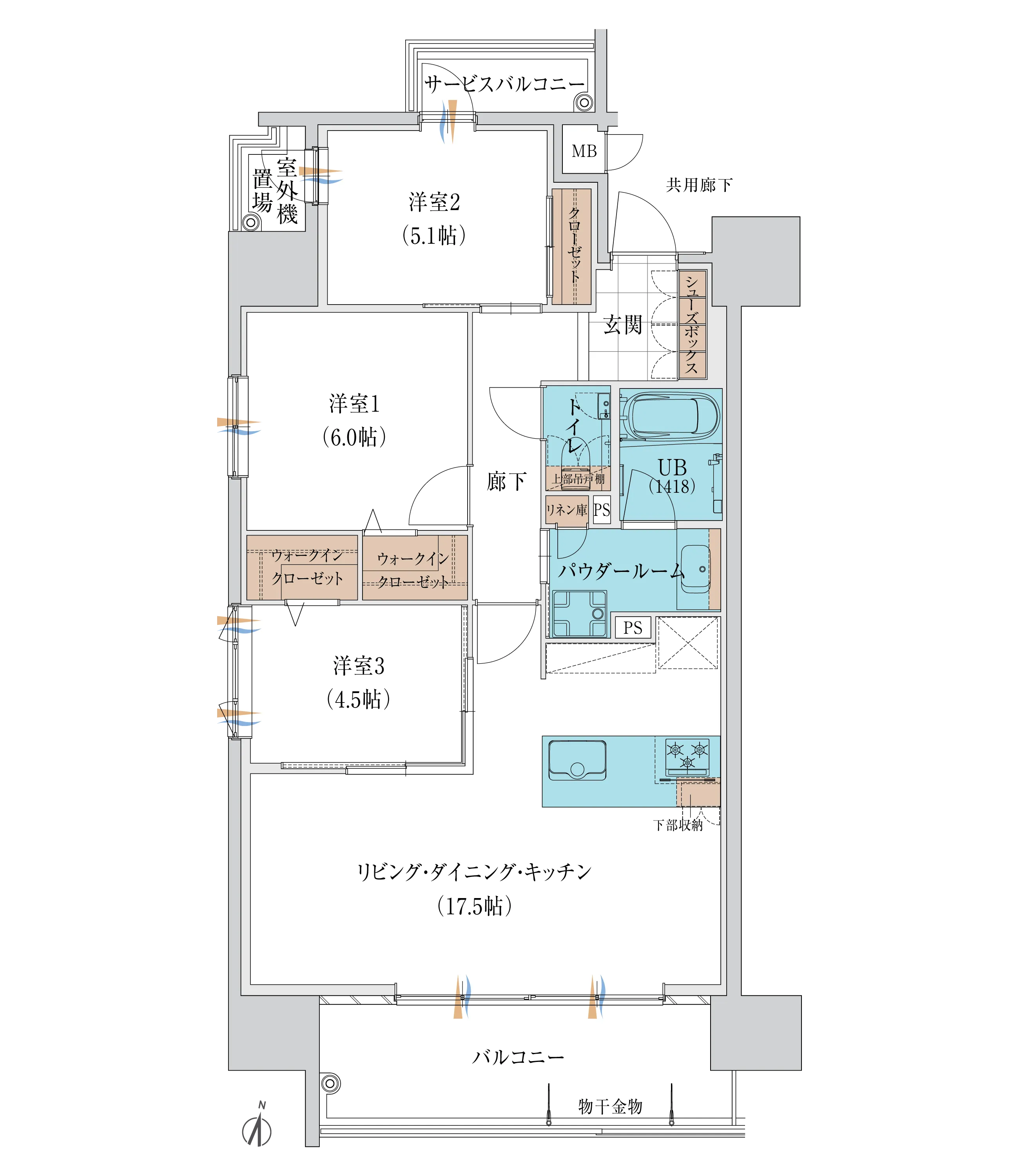 3LDK + 2WIC