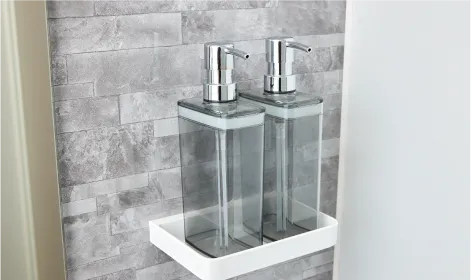 壁面には、シャンプーやボディソープなどのアイテムを収納できる収納棚を設置しました。