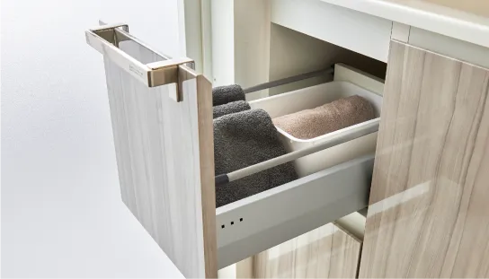 洗面台下部収納の扉は、ゆっくりと閉まるソフトクローズ機能付です。